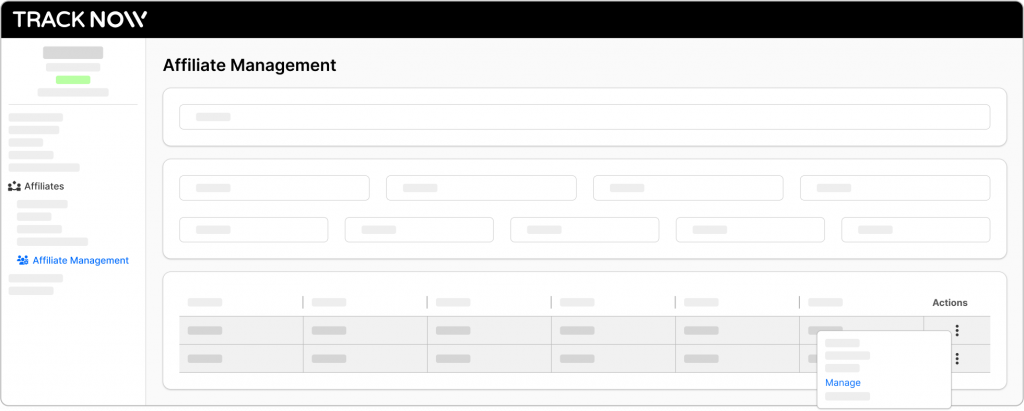 Click the three-dot icon next to the affiliate you wish to assign to a manager and select Manage