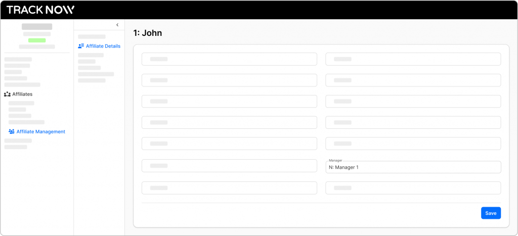 Navigate to the Affiliate Details tab where you will find the Manager field. Select the relevant manager and hit Save