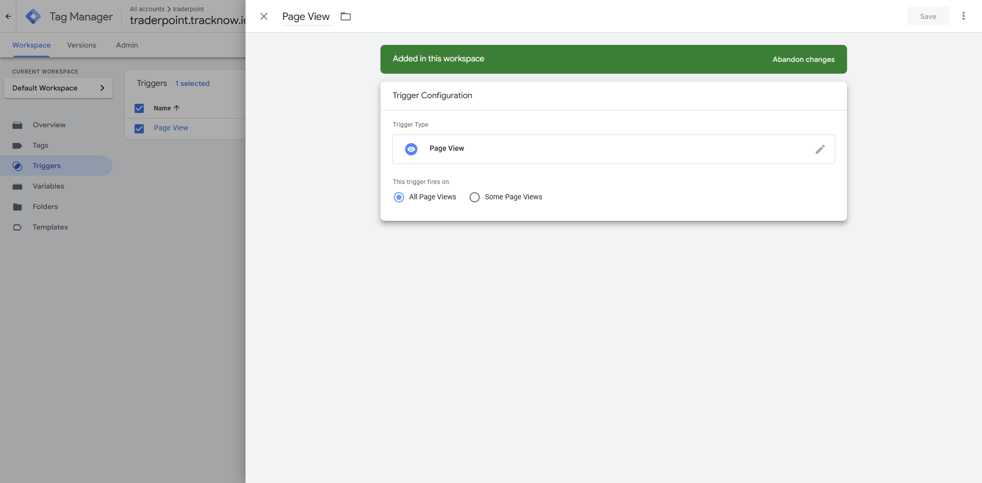In Google Tag Manager, create a new Page View trigger and set it to fire on All Page Views. This ensures the click_id is captured and saved no matter which page the customer lands on, so it won’t be missed if they enter the site on a deep link.