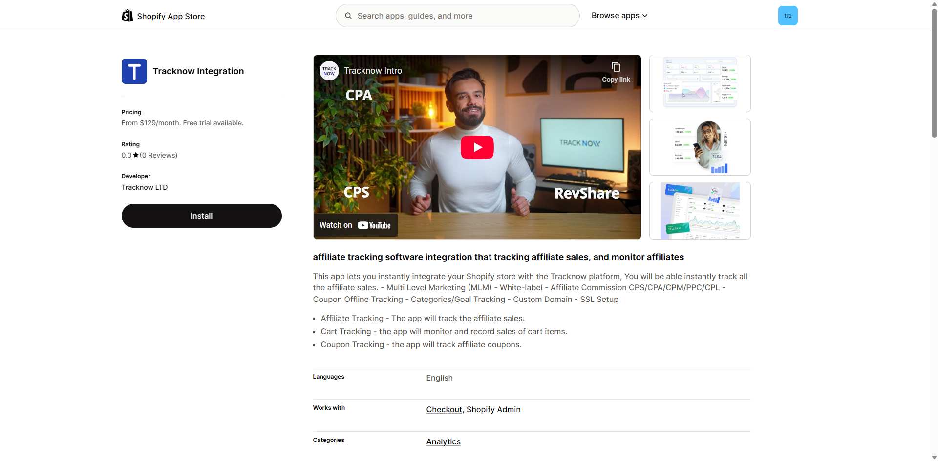 Tracknow provides a Shopify app that can be installed on a Shopify store to enable purchase tracking